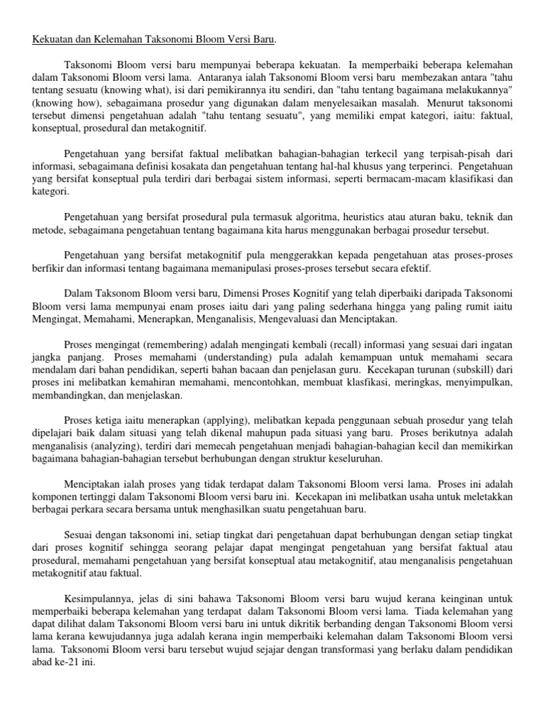 Kekuatan Dan Kelemahan Taksonomi Bloom Versi Baru Pdf